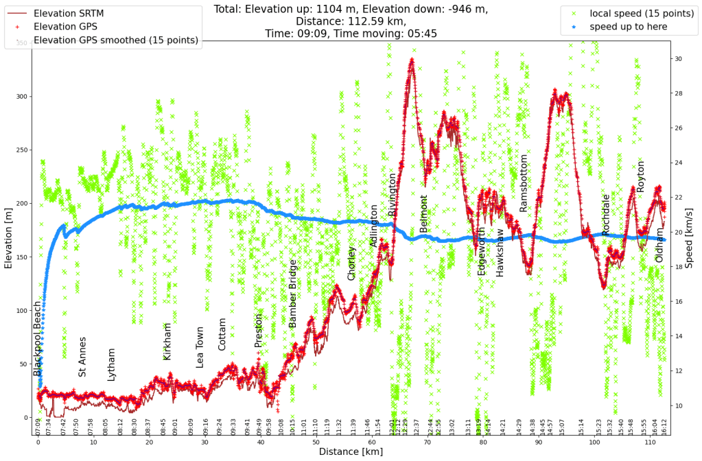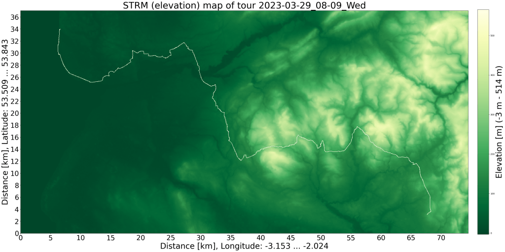 As long as I’m not lucky and the wind turns in the right direction over the course of the day, wind always means a longer overall journey time, with a wind of just 15 km/h it’s already 50% longer. The data in the table is somewhat idealised, due to potholes and vehicles parked on the road, as well as natural reasons such as intersections and pedestrian crossings, an average speed of over 30 km/h is not feasible. On the headwind side, it helps that the wind is weakened somewhat near the ground by hedges, houses, trees, hills and roads that are not exactly straight. One can also reduce your own cross section slightly, which also reduces wind drag. I also think that I put in a little more effort against the wind and therefore it doesn’t take quite as long.