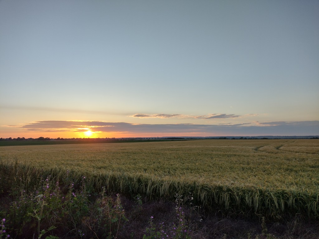 I continue to do activities and take photos, but this means I have less time to write posts. And of course I work, which is nice but takes so much time :). This photo was recently taken on the way home, with fluffy and pastel clouds, lots of blue sky, pleasant temperatures and the smell of straw. The latter are difficult to capture in a photo, I hope you get an idea. In any case, I was happy and didn’t regret the bumpy path along the fields. The blackberries later were a nice bonus.