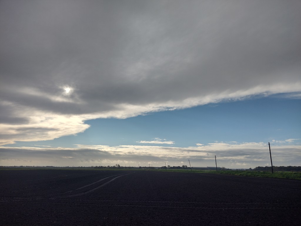 The last entry about England I complained about the drought. That has changed in the last few weeks, there is now often wet gray November weather. Although, even with some rain, for the ground we will still be in a drought for a few months (if average rainfall falls). But, thanks to southerly currents, it’s still quite warm, usually above 12°C. This makes cycling quite comfortable in the rain. My fellow cyclists didn’t see it that way, but I was in the mood to do something good for myself and so I set off on my own. After 30 minutes the worst of the rain was over and I was able to pack away my rain jacket 1.5 hours later. In the distance I even saw blue sky, but had no hope of reaching it. I found the variations in the clouds very nice to look at. It doesn’t come across so well in the panorama, but I uploaded it anyway.
